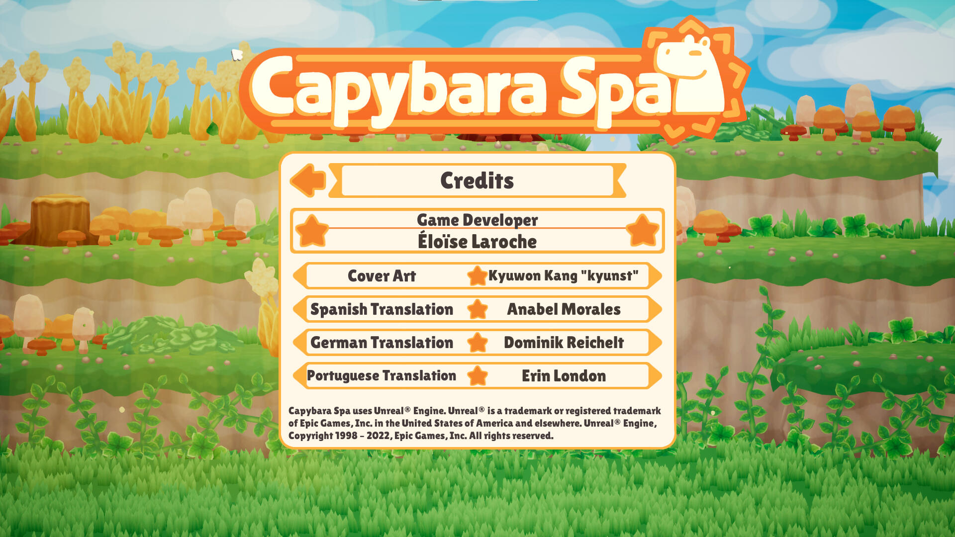 Super cute point-and-click game where you manage a spa for capybaras! It was around 700 words long, but that did not mean it wasn't challenging! I used POEditor to translate the game's segments and was also in charge of its LQA and Steam Store description as well. If you like these adorable creatures, don't hesitate to give it a try!